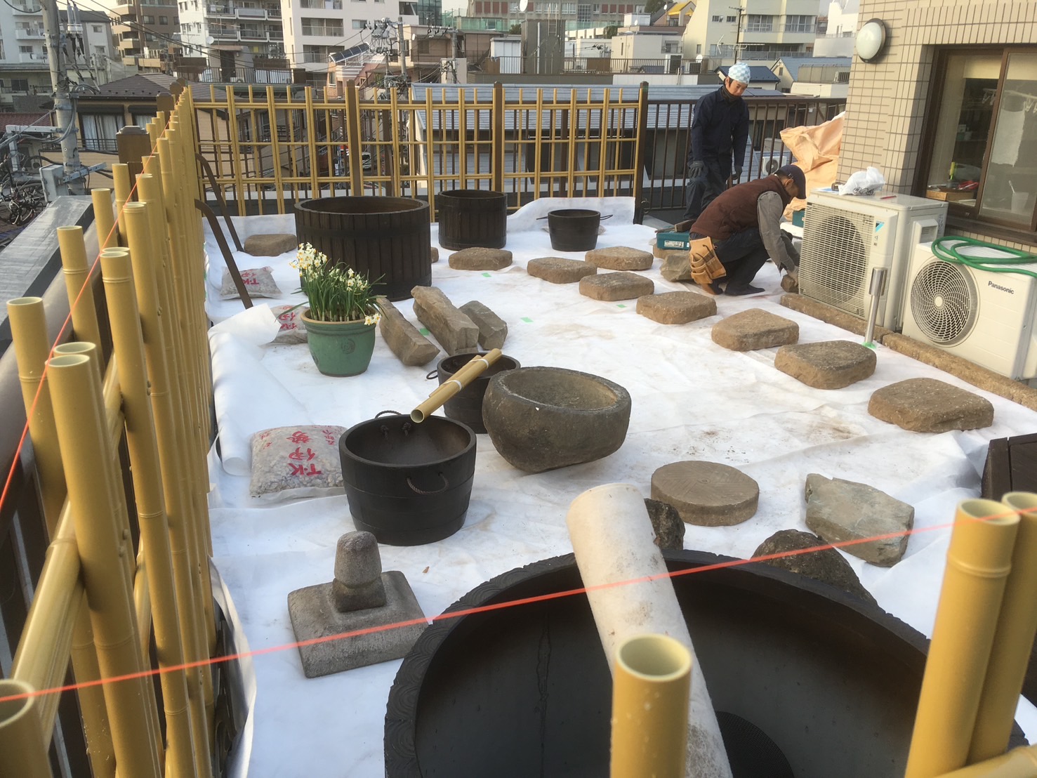 東京都台東区 屋上緑化工事 – 都会に癒しの日本庭園を