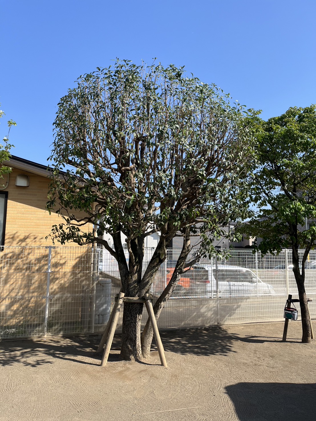 小さいほうのキンモクセイは高さ3メートル、大きいほうは5メートルでした。